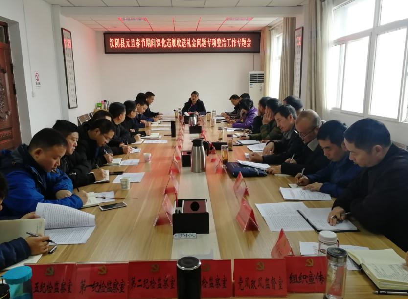 为进一步净化党风政风和社会风气,巩固违规收送礼金问题整治成果,近日,汉阴县召开元旦春节期间深化违规收送礼金问题专项整治工作专题会,及时传达省市纪委相关工作精神,安排部署全县深化整治工作,县纪委监委领导班子,机关各室部负责人、派驻纪检监察组负责人,各镇纪委书记参加会议。