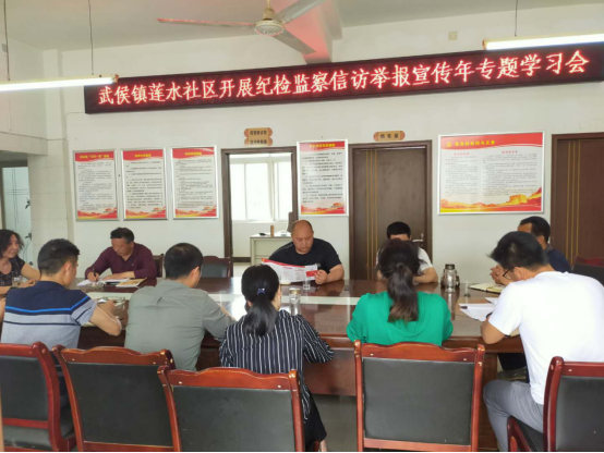 图1:勉县武侯镇莲水社区开展纪检监察信访举报宣传年专题学习