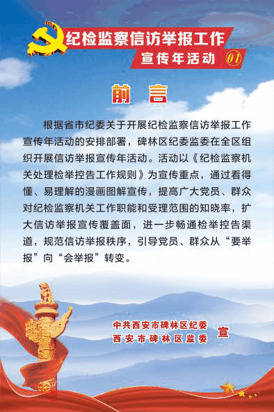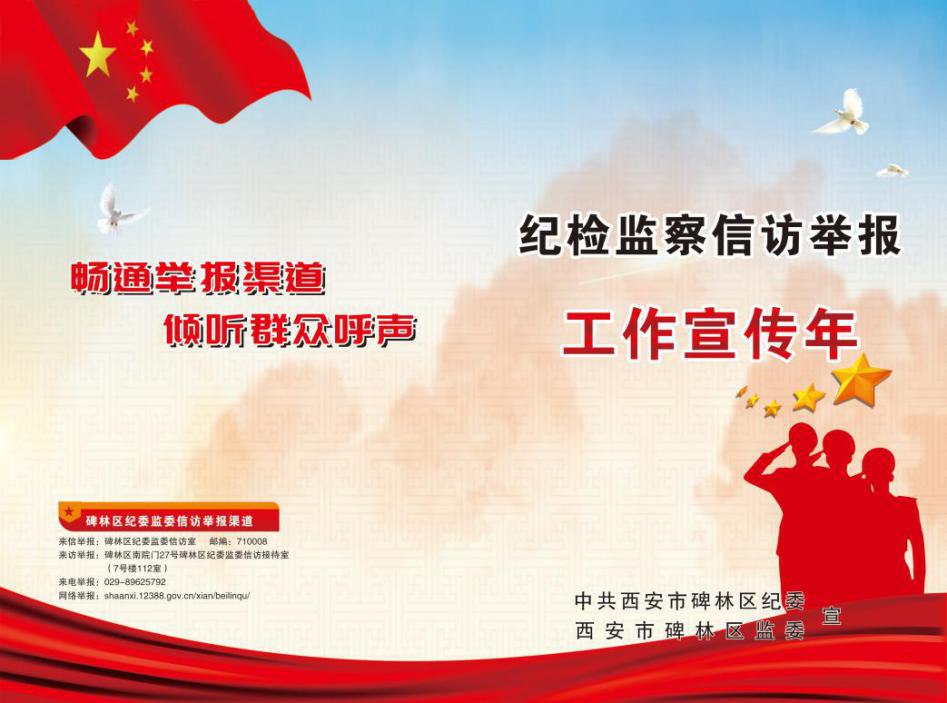 为深入学习贯彻《纪检监察机关处理检举控告工作规则》,贯彻落实习近平总书记对信访工作的重要指示批示精神和中央纪委四次全会工作部署,按照省市纪委的安排部署,碑林区纪委监委积极行动员安排部署,组织开展纪检监察信访举报工作宣传年活动。