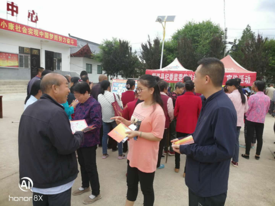 麟游县纪委监委在7月1日建党节之际,组织机关干部,结合下乡帮扶工作,深入两亭镇两亭村开展信访举报宣传活动。