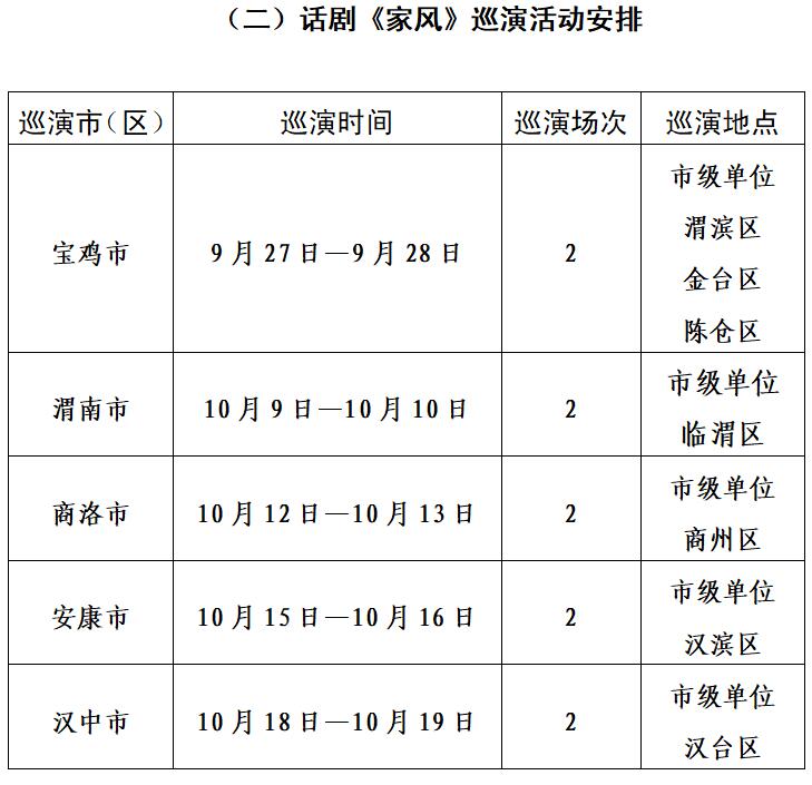 (二)话剧《家风》演出单位为西安市话剧院。该剧讲述两个不同家风的家庭因为“缘分”相遇,产生一系列误会和笑料的故事,旨在阐明家风好,就能家道兴盛、和顺美满;家风差,难免殃及子孙、贻害社会。启发广大党员干部遵守法律法规,管好家人,涵养家风。