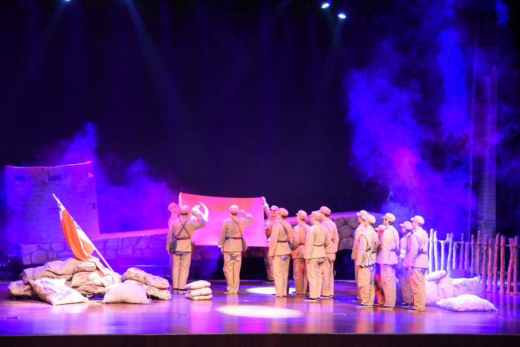 演出现场,壮阔的革命历史场面一幕幕再现于舞台,剧情跌宕起伏、唱词感人肺腑,演员表演精湛令人动容,整场话剧运用讲述与再现的叙事方法,将老英雄张富清深藏功名60载的事迹层层揭开,向观众立体再现一个优秀共产党员不忘初心、廉洁奉公的真实故事。