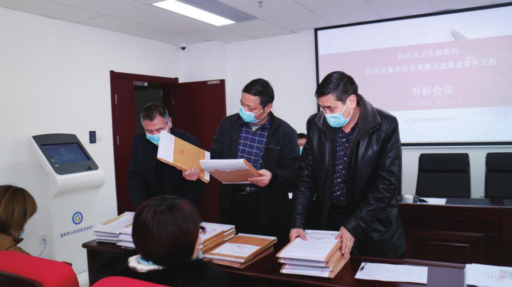 在宝鸡市公共资源交易中心开标现场,投标人代表正在仔细检查每份标书的密封状况。潘轶峰 摄