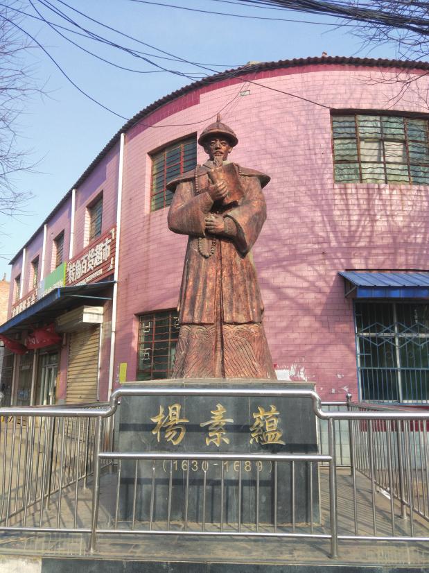 位于宜君县五里镇石堡村街道中心的杨素蕴塑像