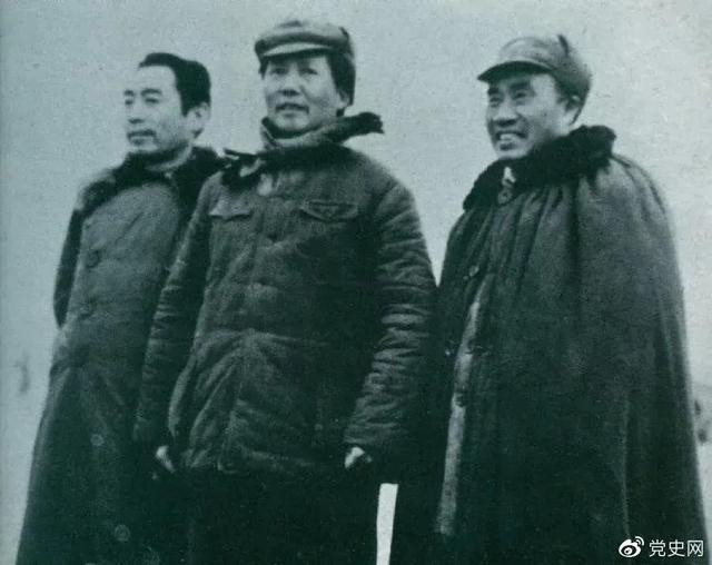 1946年3月4日,毛泽东和朱德、周恩来在延安机场。