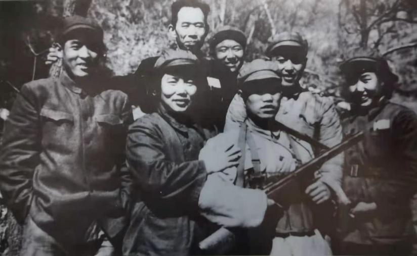 常香玉(左二)随慰问团赴朝鲜慰问志愿军。(资料照片)