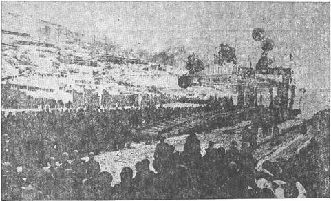 1991年12月,西延铁路最后一节轨排在一片锣鼓声、鞭炮声、汽笛声和数万人的掌声中徐徐落下。(彭伦理摄)