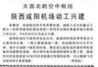 关于咸阳机场动工兴建的报道。(资料图片)