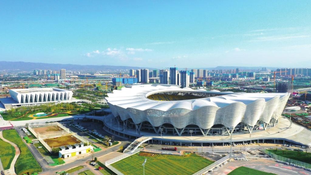 在灞河之畔,绽放着一朵巨型钢铁“石榴花”,这就是第十四届全国运动会主场馆——西安奥体中心。目前,这朵“盛世之花”已经装扮一新,准备迎接全国各地的体育健儿。