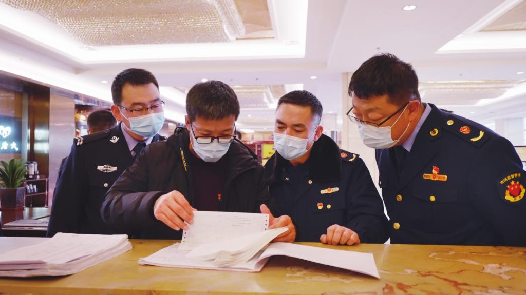 今年元旦、春节期间,榆林市纪委监委联合市公安局、市场监督管理局等部门,对高新区3家酒店、饭店进行突击检查。苏宝利 摄