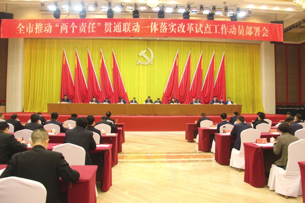 宝鸡市推动“两个责任”贯通联动一体落实改革试点工作动员部署会现场。(宝鸡市纪委监委供图)