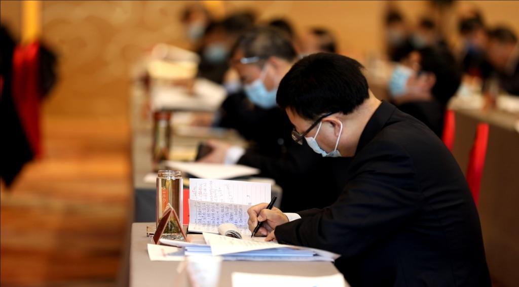 在十三届陕西省纪委五次全会上,与会人员认真听取报告并作记录。贾佳 摄