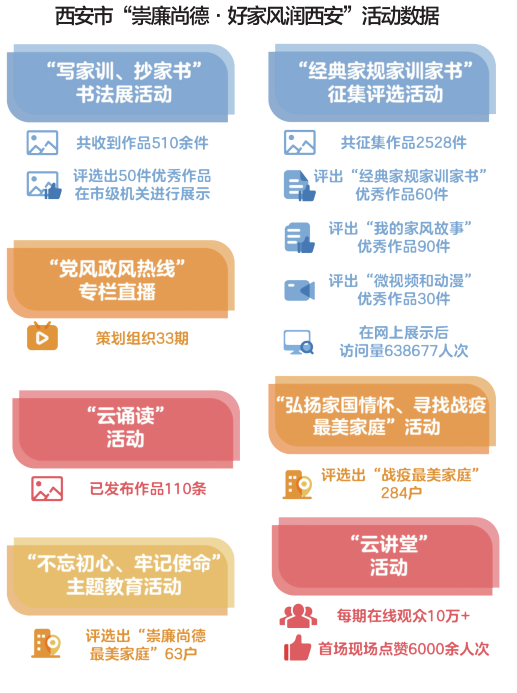 家只有用心来经营、家风只有身体力行来涵养,才能让整个家庭乘“风”破浪、行稳致远。西安市纪委监委宣传部相关负责人介绍,在西安市家风建设活动中,不少生动、真实、富有烟火气息的家风故事被发掘出来。在“经典家规家训家书”征集评选活动中,收到作品2500余件,优秀作品在网上展示期间,访问量超63.86万人次。