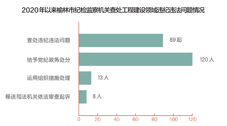 资金集中处,必是廉政风险多发地。榆林市纪委监委紧盯项目资金集中的工程领域腐败问题:2020年以来,全市纪检监察机关共查处工程建设领域违纪违法问题89起,给予党纪政务处分120人,运用组织措施处理13人,移送司法机关依法审查起诉8人,进一步强化从严惩处的高压震慑,有力削减了工程建设领域问题存量,问题增量也得到有效遏制。