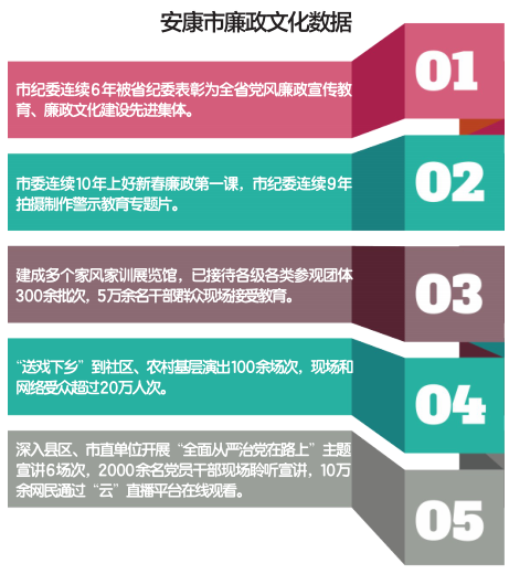 “好干部是教育出来的。”安康市委常委、市纪委书记、市监委主任田沐臣向记者介绍了安康在强化廉政教育,增强党员干部“不想腐”的自觉上作出的努力,“近年来,安康市纪委监委首先抓住家庭这个载体,拍摄了汉阴沈氏、岚皋杜氏、白河黄氏、汉滨谢氏等4部家规家训专题片,先后在中央纪委国家监委网站播发。在市博物馆建成了安康市家风馆,引领广大干部群众建设好家庭、培育好家风。用群众喜闻乐见的方式深化巩固新民风建设,积极组织‘清风颂廉助脱贫’暨送戏下乡文艺展演46场次,惠及近60万群众。另外,安康市陆续建成了14个省、市级教育基地,达到了县县有基地,方便党员干部接受警示教育的同时,也让群众感受到正风肃纪就在身边。”