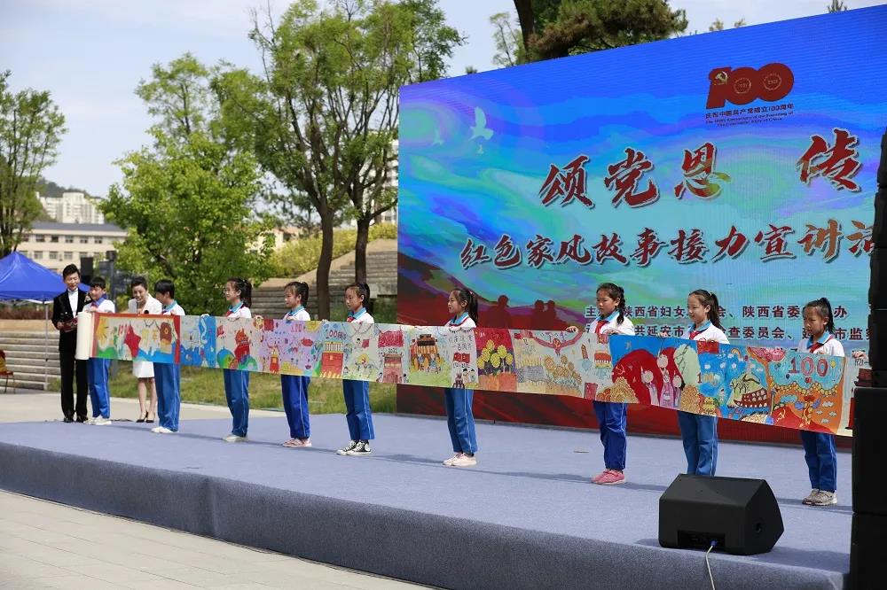 初心如磐砥砺行,使命在肩不停步。活动中,宝塔区第七中学、职工文工团分别以歌舞、情景剧的形式表演《江山》《红色精神永流传》;杨家岭福州希望小学的少年儿童展示的百米画卷表达了对党和祖国的感恩与祝福……来自延安市区党员干部职工代表、学生代表、各界群众代表300余名,现场聆听了红色家风故事。