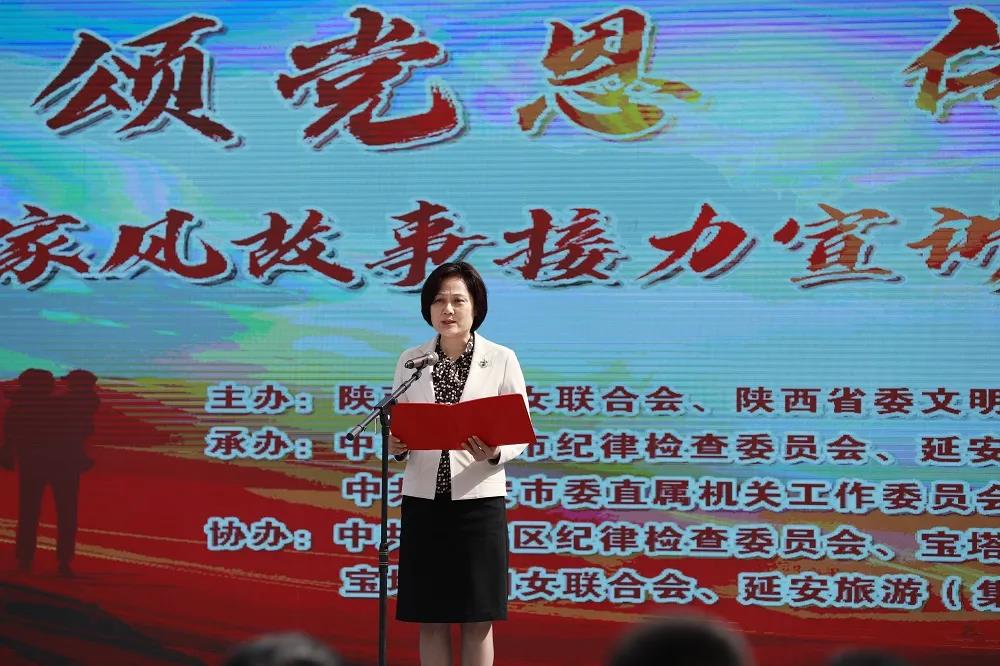 6月3日,由全国妇联策划指导,陕西省妇联、陕西省委文明办主办的“颂党恩 传家风”红色家风故事接力宣讲活动在延安宝塔山下举行。省妇联党组书记、主席龚晓燕出席并讲话,省妇联党组成员、副主席林海君,延安市委常委、统战部部长李春鸽出席活动。