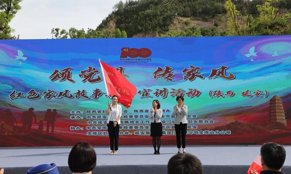 培育廉洁守信的清明家风,秉持勤俭持家的严明家教,建设崇德尚善的文明家庭,是各级妇联组织的神圣使命。当天,来自省市区妇联领导接力传递红色家风宣讲团团旗。接过团旗,就接过了一份沉甸甸的责任!接过团旗,就标志着延安市红色家风故事接力宣讲活动全面启动。
