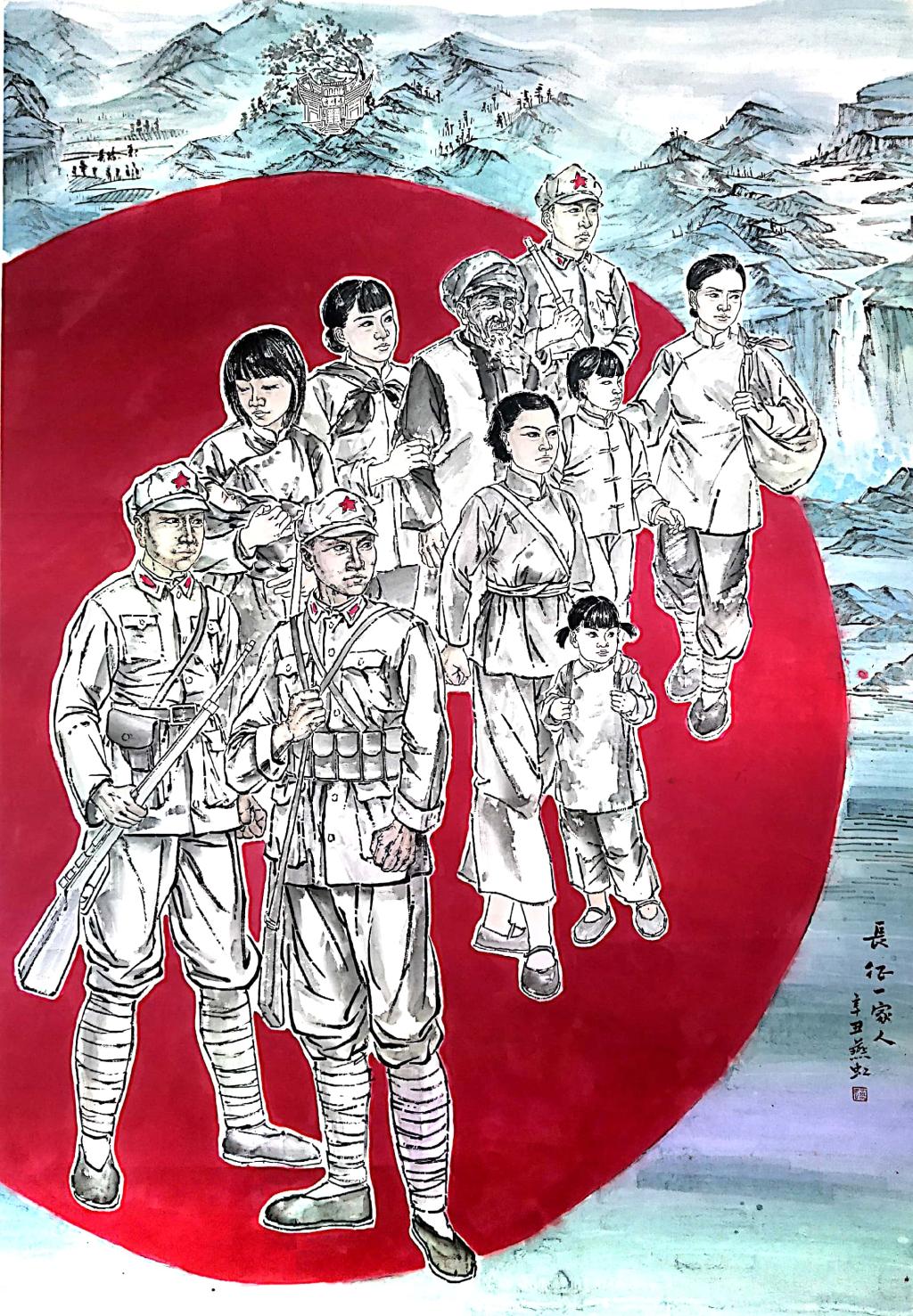 图为绘画作品《长征一家人》。 作者 燕虹