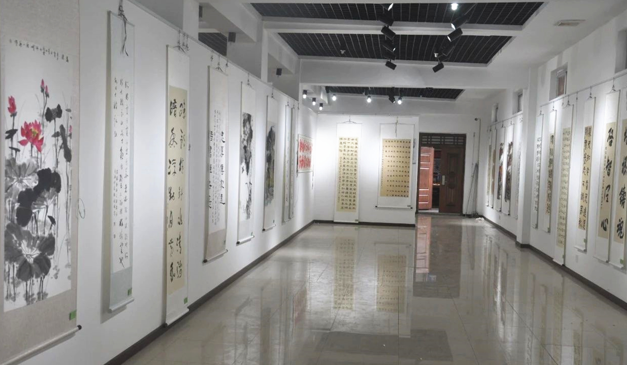 图为家风建设主题书画展厅一角。