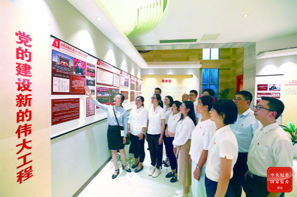 为庆祝建党百年,江苏省连云港市海州区纪委监委开设中国共产党纪律建设史专题展。图为该区纪检监察干部在专题展中参观学习。张孟瑞 摄
