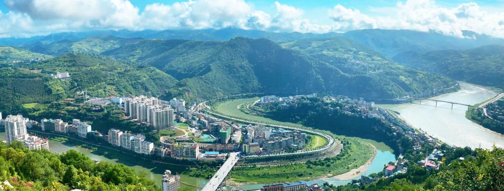俯瞰旬阳,整个城区形似太极八卦图。贾佳 摄