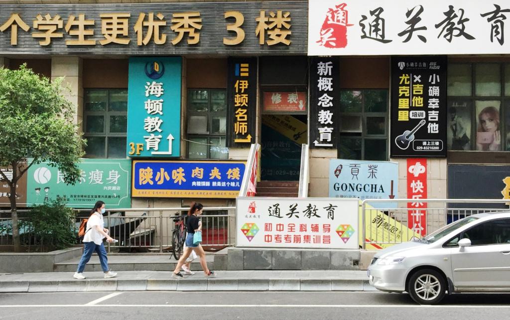 西安街头随处可见各类校外培训机构的标牌和广告。宋雨 摄