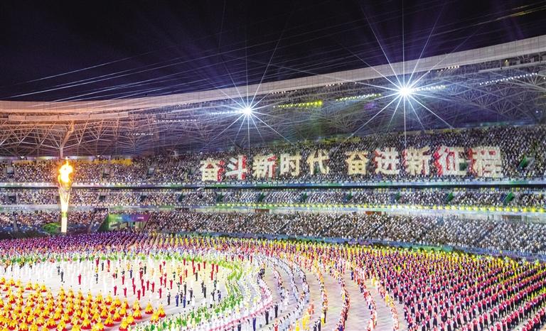 十四运会开幕式,从逐梦深蓝到砺剑长空,从中国制造到中国创造,凸显了科技自立自强、奔向新征程的决心和信心。