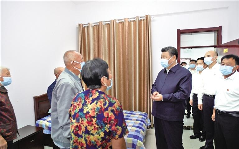 9月13日至14日,中共中央总书记、国家主席、中央军委主席习近平在陕西省榆林市考察。这是14日下午,习近平在绥德县张家砭镇郝家桥村互助幸福院,同村里的老人亲切交流。 新华社记者 李学仁摄