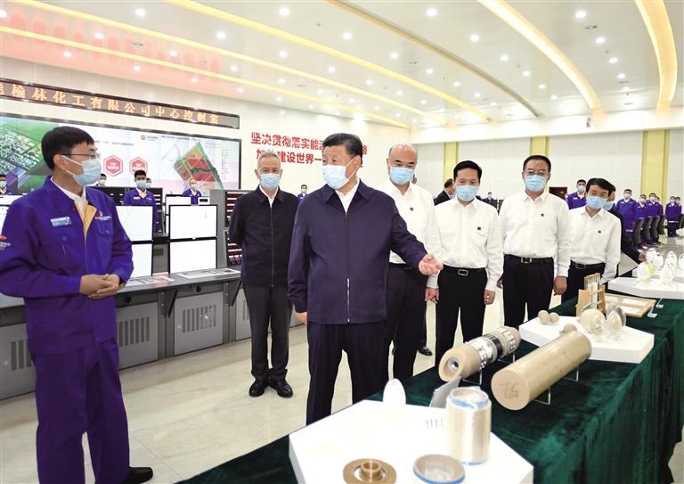 9月13日至14日,中共中央总书记、国家主席、中央军委主席习近平在陕西省榆林市考察。这是13日上午,习近平在国家能源集团榆林化工有限公司中心控制室考察。 新华社记者 李学仁摄