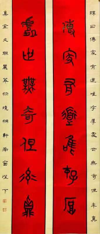 金文对联《传家有道唯忠厚 处世无奇但求真》