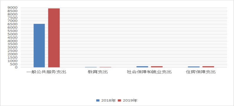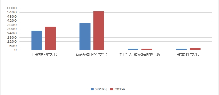 (4)住房保障支出203.84万元,包括住房改革支出203.84万元,其中人员经费支出203.84万元,较上年增加26.98万元,原因是人员工资增加,住房公积金相应增加。 3、支出按经济科目分类的明细情况 (1)按照部门预算支出经济分类的类级科目说明 2019年本部门一般公共预算支出9378.29万元,其中: 工资福利支出3361.3万元,其中人员经费支出3361.3万元,较上年增加569.37万元,原因是财政调整增加人员工资。 商品和服务支出5541.22万元,其中人员经费支出209.81万元,较上年减少3.07万元,原因是按照财政要求调整相关科目;公用经费支出646.82万元,较上年减少61.2万元,原因是按照财政要求进一步压缩日常公用经费;专项业务经费支出4684.59万元,较上年增加1747.28万元,原因是增加了办案专项经费和巡视工作专项经费。 对个人和家庭的补助190.94万元,其中人员经费支出190.94万元,较上年减少13.02万元,原因是按照财政要求调整相关科目。 资本性支出284.83万元,其中专项业务经费支出284.83万元,较上年增加93.93万元,原因是政府采购预算增加。