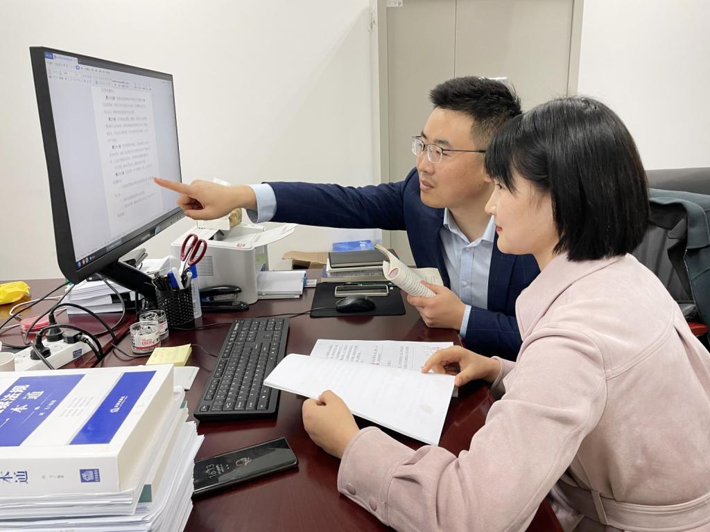 陕西省纪委监委案件审理室干部在讨论案情。(陕西省纪委监委案件审理室供图)