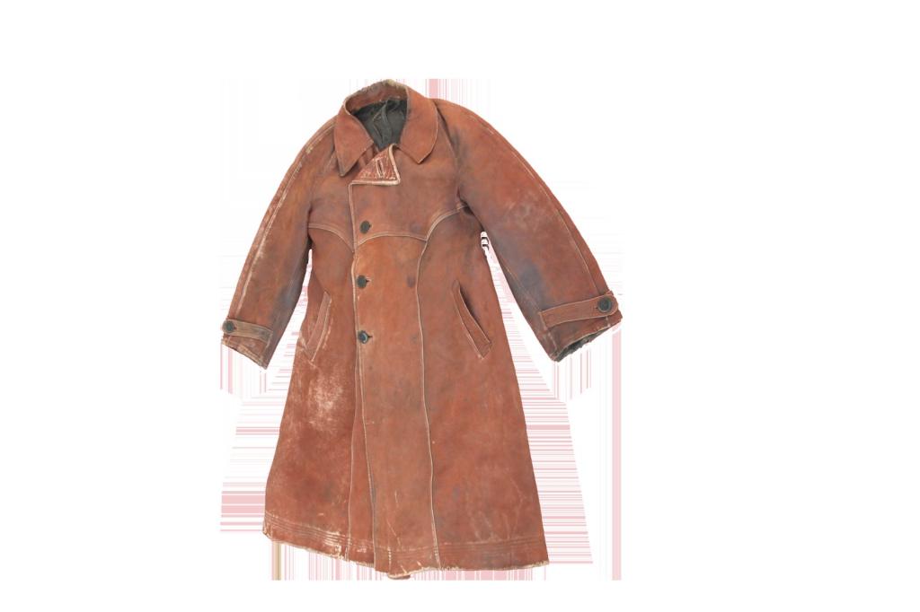走进纪念馆,让我们暂将目光留驻在一件大衣上,去“抚摸”它由岁月造就的纹理。这件深褐色的翻领皮质大衣长115厘米,其前襟、领子、袖口等多处已经严重褪色,里衬也有几处破洞。