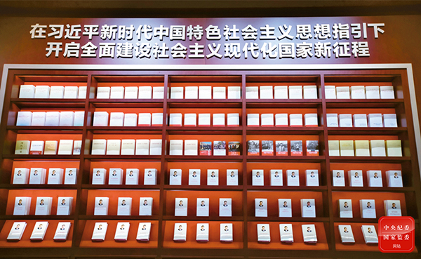 习近平新时代中国特色社会主义思想是当代中国马克思主义、二十一世纪马克思主义,是中华文化和中国精神的时代精华,实现了马克思主义中国化新的飞跃。图为中国共产党历史展览馆展出的习近平总书记的部分重要著作以及学习阐释习近平新时代中国特色社会主义思想的部分重点图书。刘新武 摄