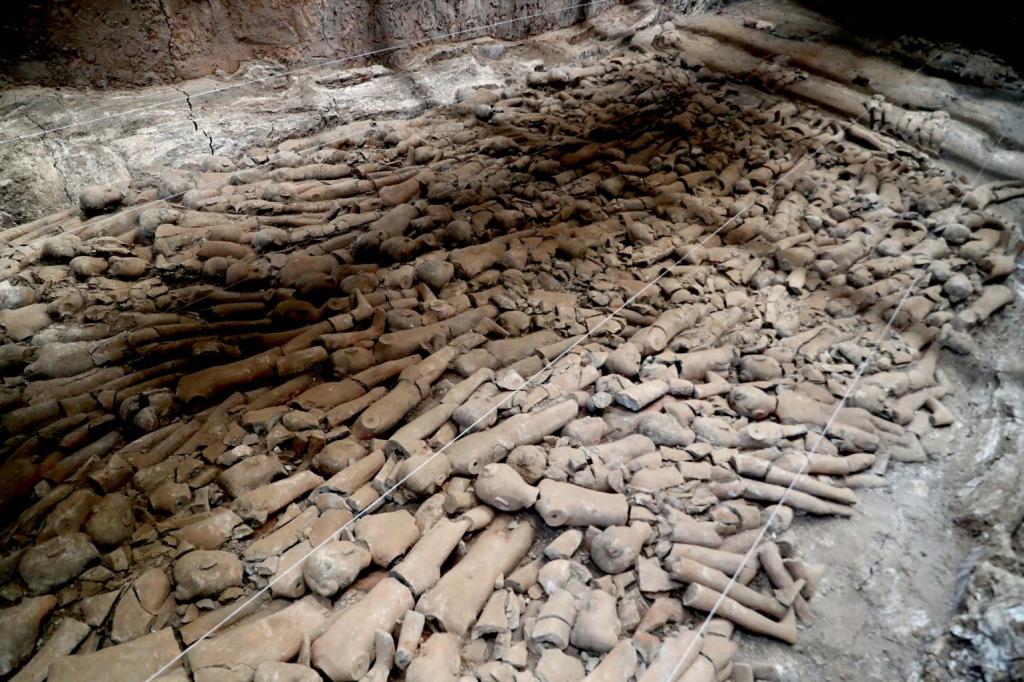 江村大墓外藏坑考古发掘现场出土的大量陶俑。戴吉坤 摄