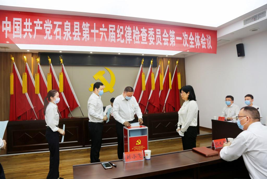 中国共产党石泉县第十六届纪律检查委员会第一次全体会议选举产生县纪委常务委员会委员。宁本枝 摄