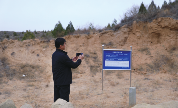 麻晓军巡查秦长城遗址并拍照。贾佳 摄
