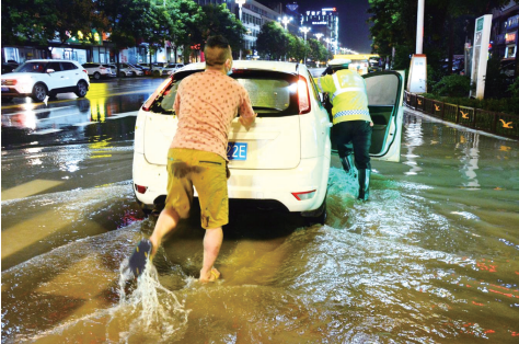 7月15日凌晨2时,雨越下越大,蒲城县城区多条街道出现积水情况。宋扬剑直接冲出了家门。