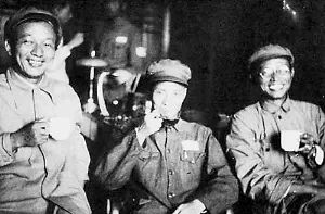 1949年广州军管会干部合影,右一为左洪涛像左洪涛这样的我党秘密党员,还有许多。他们在中共中央一整套方针、政策和具体规定的指引下,放开了手脚,争取了主动,获得了充分的活动场所。有的地下党员利用各种社会关系当了乡长、保长、科长、县长、国民党的书记长,甚至秘密潜入国民党党部和军队,为我党做出了不可磨灭的贡献。