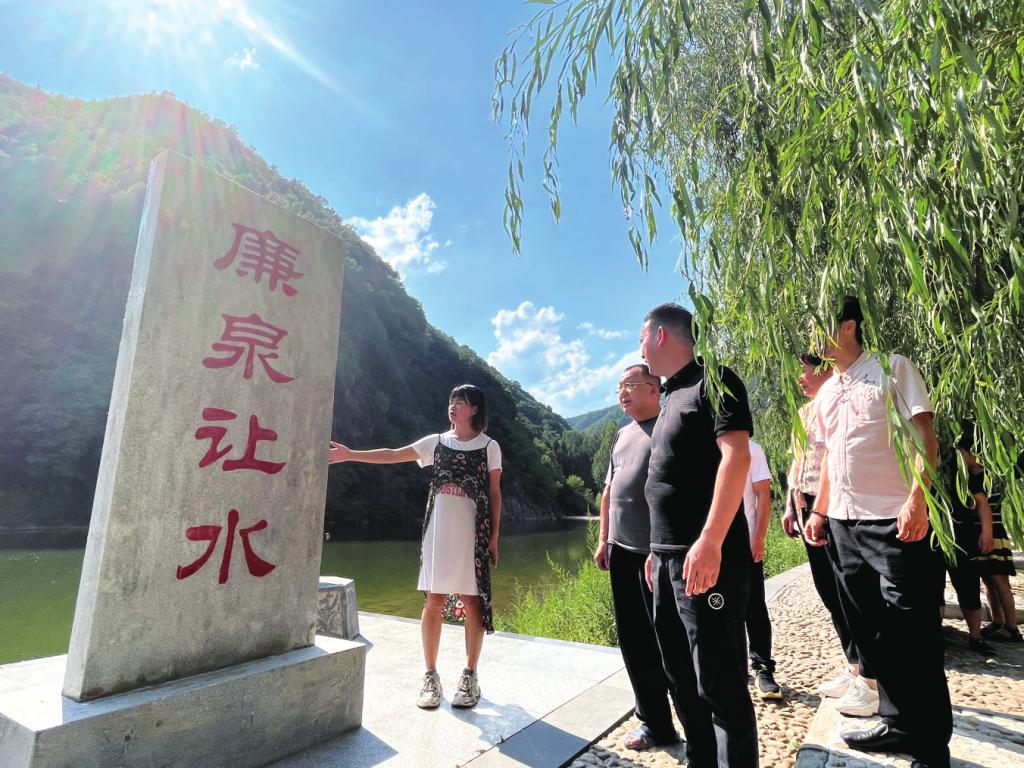 8月11日,城固县小河镇小河村村民来到湑水河边,参观“观水思廉文化园”。蔡怡 摄