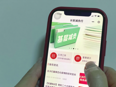 从2021年8月开始,一款名为“长安减负行”的微信小程序受到西安市长安区基层干部的广泛好评。干部通过小程序反馈基层问题,长安区纪委监委收到问题后,进行分析研判,形成处置建议,对问题反映集中的,成立核查组核查;对一般性问题,向相关部门下发督办单督促整改。