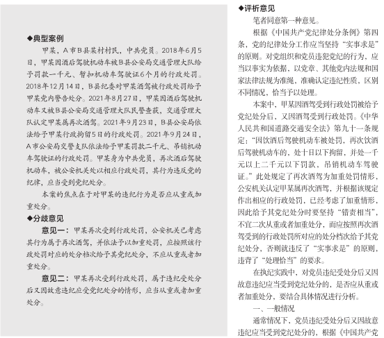党员再次受到行政处罚后给予党纪处分是否应从重或加重