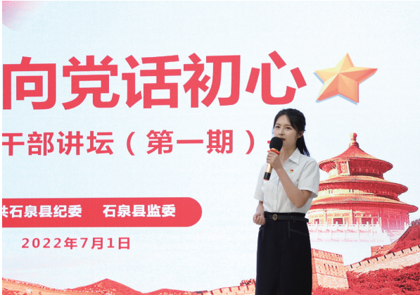 石泉县纪委监委每月定期开展“清风石泉讲坛”活动,每期邀请3名至5名年轻干部上台分享交流。吴功娟 摄
