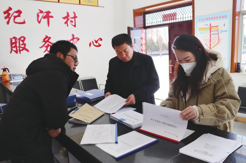 春节收假第一天,榆阳区纪委常委贾梦警带队督查小纪汗镇干部作风建设、农村集体“三资”管理等工作情况。(榆阳区纪委监委供图)