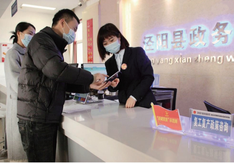 泾阳县纪委监委聚焦优化营商环境和惠民惠企政策落实情况开展精准监督。图为泾阳县政务服务中心工作人员为群众讲解线上办证快捷方法。刘伟 摄