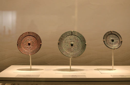在“汉风廉韵—— 汉代廉政文化特展”中展出 的一组规矩镜。云娜 摄