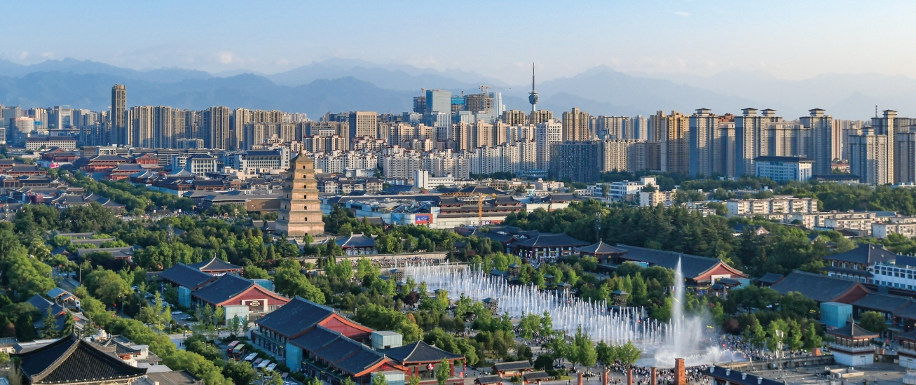 从大雁塔北广场望去,大雁塔巍峨挺拔,四周绿树环绕,宛如一幅流动的千年古画。郝钟毓 摄