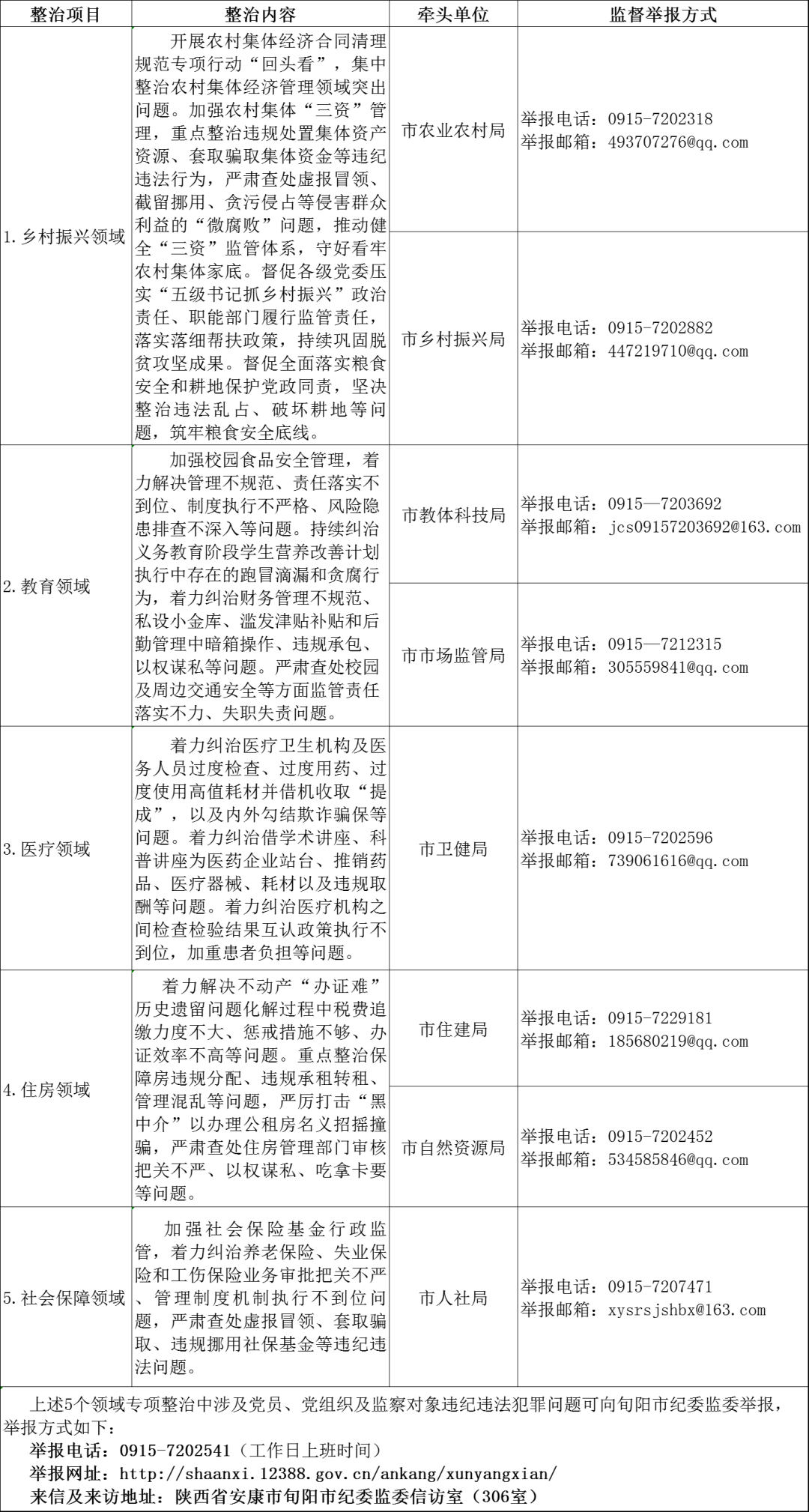 旬阳:公布2024年群众身边腐败和作风问题专项整治内容及监督举报方式