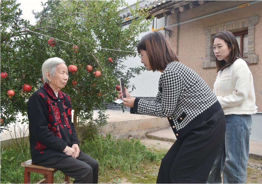 礼泉县人社局工作人员上门为行动不便老人进行待遇领取资格认证。(礼泉县纪委监委供图)
